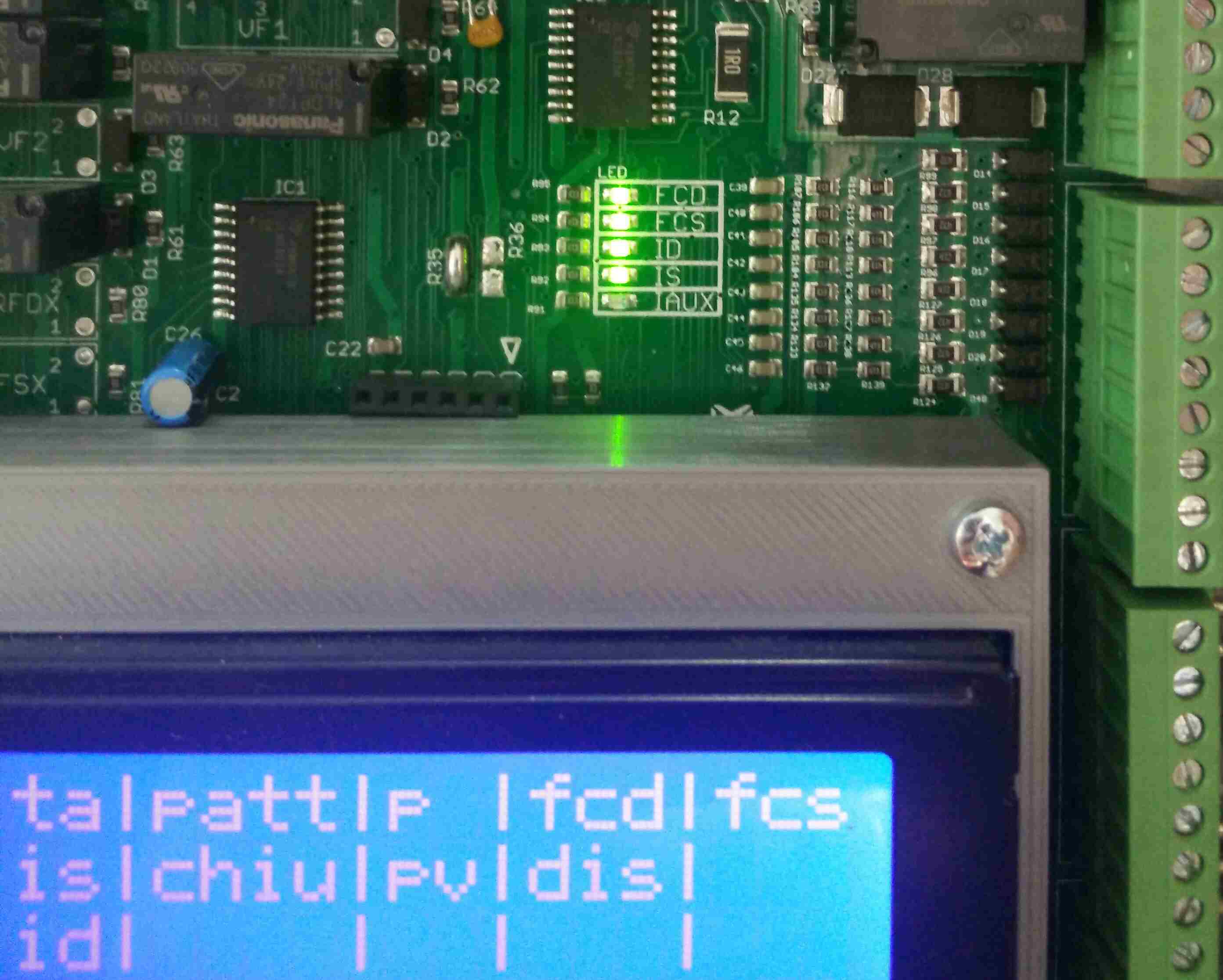 Lo stato degli induttori e dei finecorsa viene riportato, oltre che sul display, anche su led appositi sulla scheda