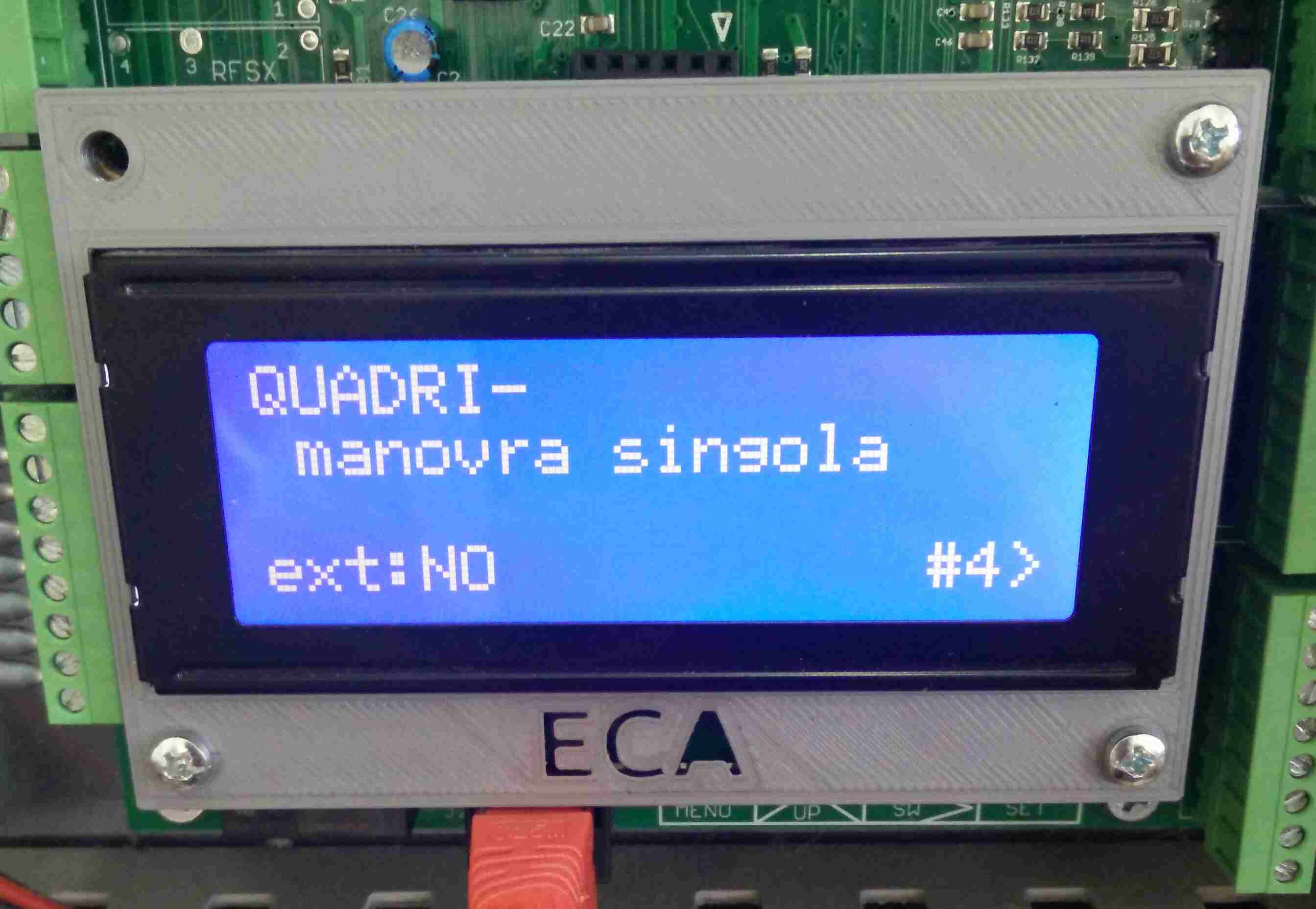 con indirizzo 16, che il quadro è impostato per funzionare con manovra singola (cioè universale), non ha comunicazione esterna per telecontrollo attiva (segnalato dalla voce ext:NO). Al momento della stesura del manuale la comunicazione per telecontrollo non è supportata, mentre i valori possibili per il tipo di manovra riportato nella pagina 4 sono: